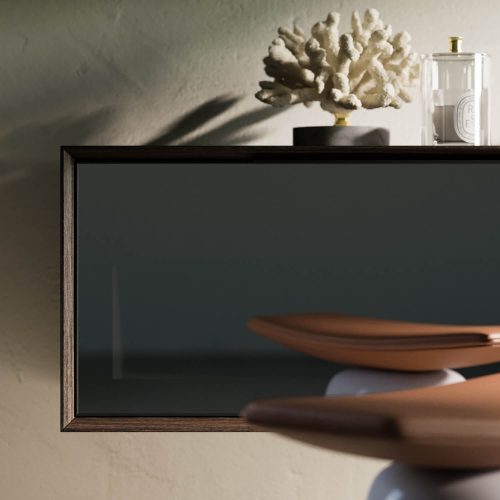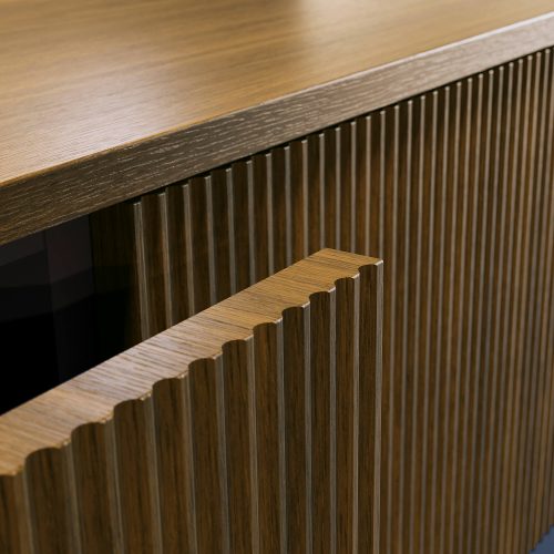 The ribbed effect in the bathroom furniture